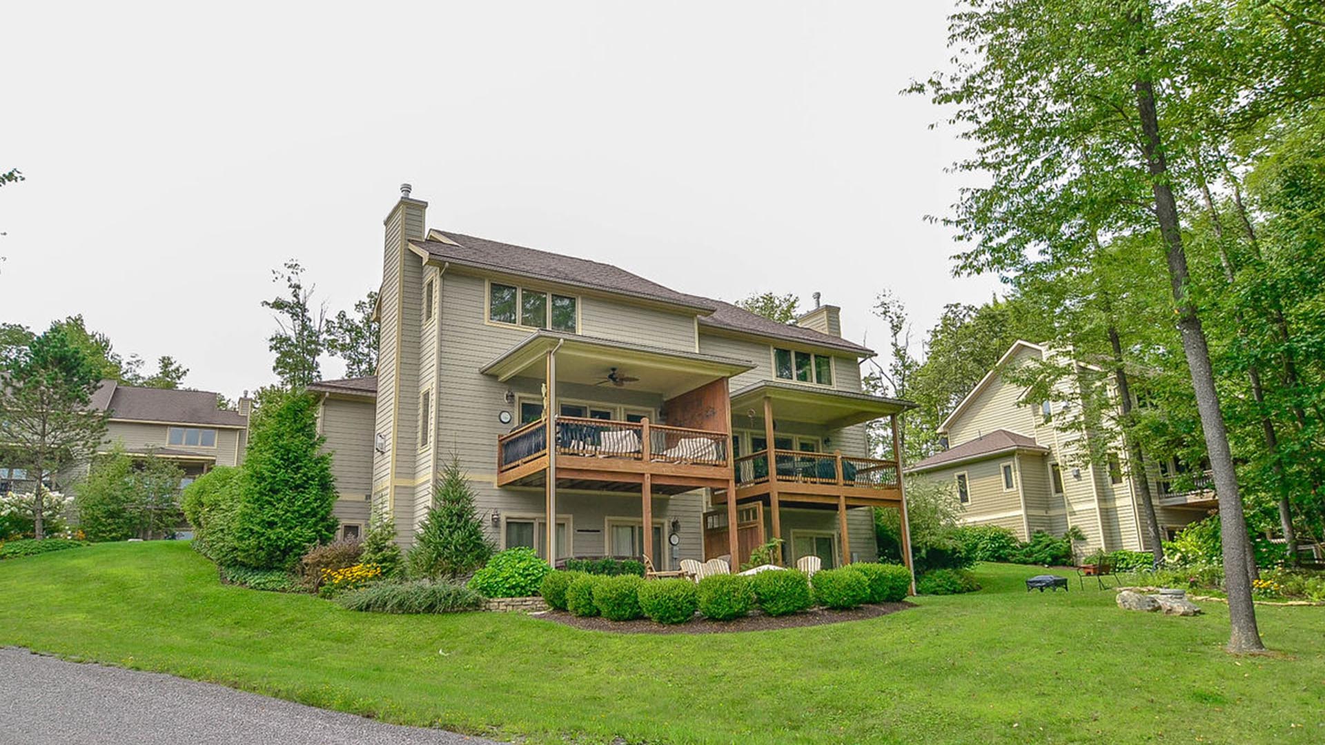 This quiet community of townhomes located in central Deep Creek Lake offers a peaceful setting for your lake getaway. Each unit has 3 levels of living space and 5 bedrooms so the whole family has room to spread out. While still providing a private community feel, you are located less than one mile from many of your favorite spots at Deep Creek Lake! Stop by Dutch's for dinner, have drinks on the lawn at the Honi Honi, or catch a new movie at Garrett 8 Cinemas. Its easy to get out and explore the area around Deep Creek Lake when you're staying at a townhome in Timberlake Village.