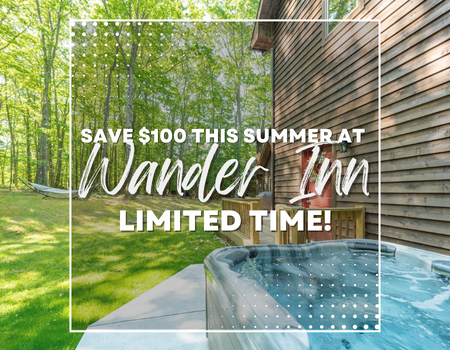 Sun, Jun 16, 2024 to Sun, Aug 25, 2024Save $100 on your weekly vacation at Wander Inn! Valid on any weeklong stay during the 2024 summer season, holidays included. (Offer is not retroactive and cannot be combined with other discounts or promotions.)