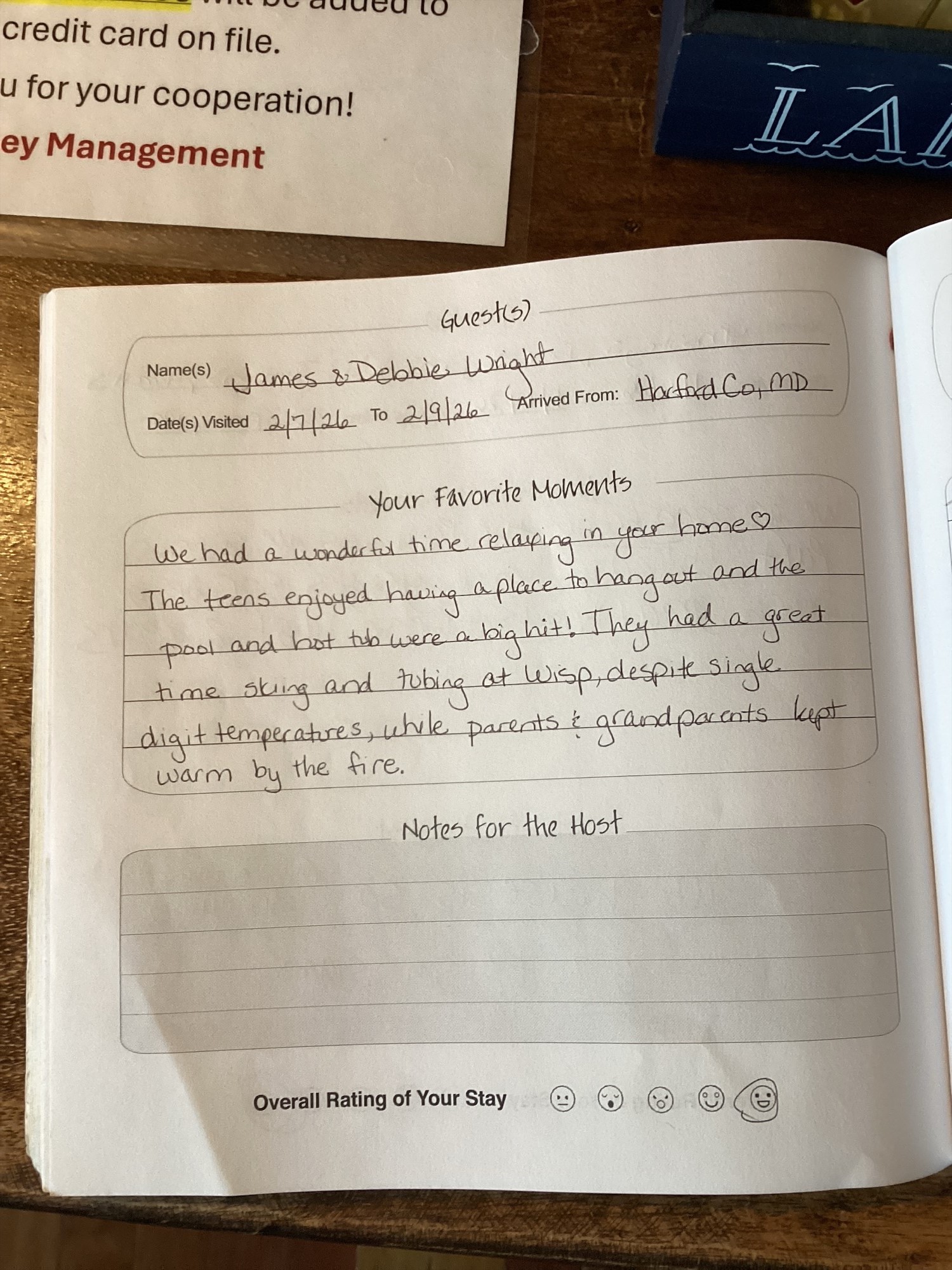 Overall we enjoyed our stay! We loved the short walk to the water and the quiet and scenic landscape of the community. The family loved the open layout, pool table, hot tub, and sauna especially! Only improvements we’d suggest are window treatments for the upstairs bedroom with the decorative triangle window, as well as fixing the ice maker! Our AC broke during our stay due to the unusual heatwave but Railey was quick to respond to our calls and take action, which we appreciated! We only wish we had come when the indoor pool renovation was complete so we could enjoy that too! Overall it was a great stay and we look forward to returning again sometime!
