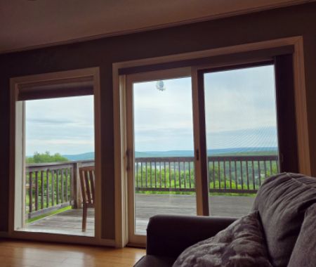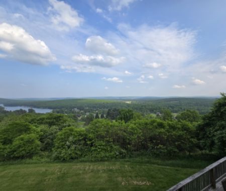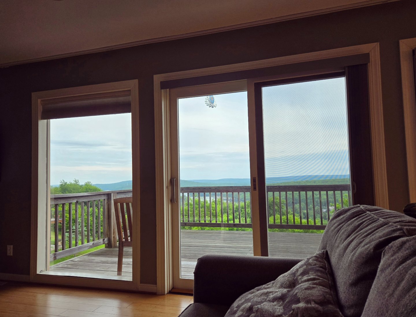 Pros: This house had an incredible view & great amenities. Beds were comfortable, the neighborhood was quiet and peaceful, and the sauna & hot tub were wonderful.Cons: - Deck furniture was very worn & covered in mildew; one of the chairs looked like Davy Jones' locker covered in crustaceans. Would appreciate more attention paid to cleanliness of/updating furniture when needed.- Mole/groundhog deterrent noise-maker things placed around the back of the property were VERY annoying (and ineffective - a groundhog we nicknamed Tim dug the entrance to his burrow literally right next to one of them).- Noticeable temperature differences on each level of the house. The main level was comfortable, but the lower level was freezing, while the top floor where the bedrooms are located was uncomfortably warm and made sleeping difficult. Might look into upgrading the HVAC system to correct this issue.